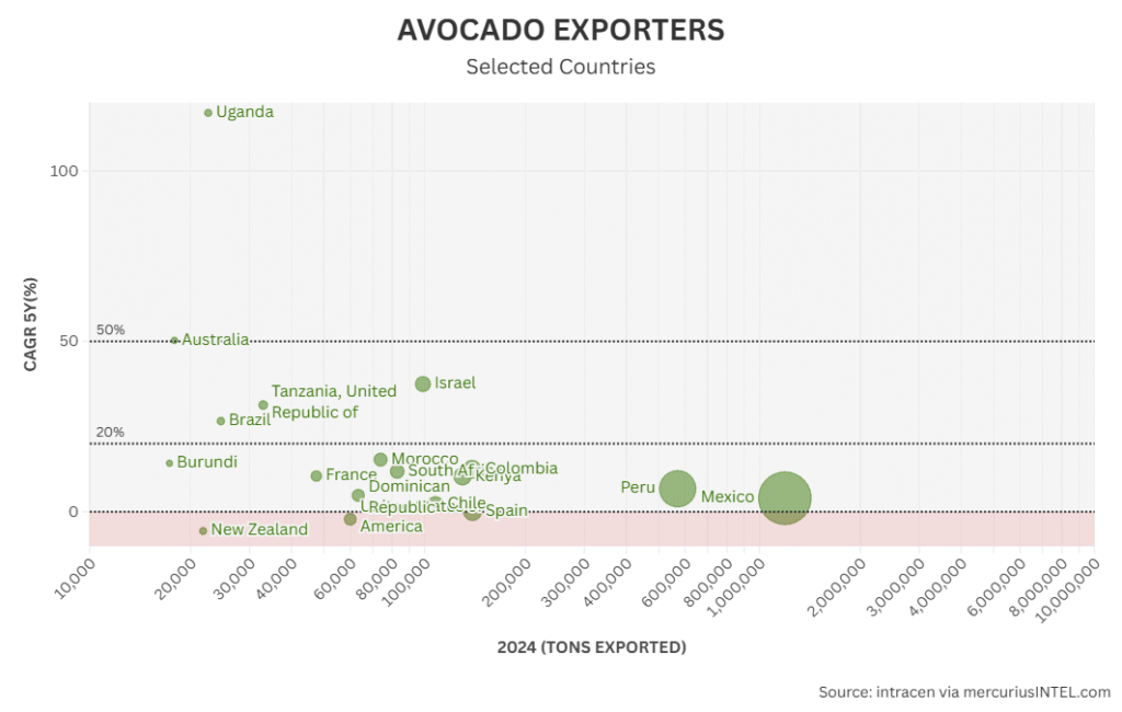 • AVOCADO EXPORTERS (Volumes&CAGR 5Y)